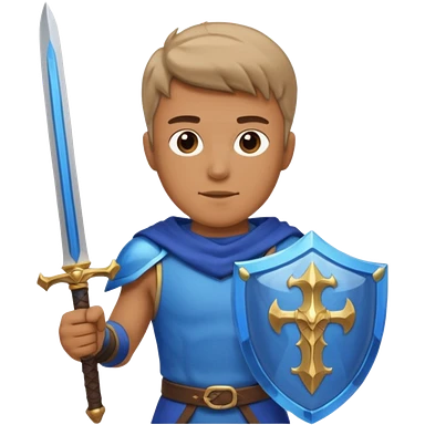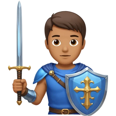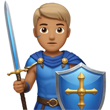 Knight Robot with a shield and sword and a crest in the chest emoji