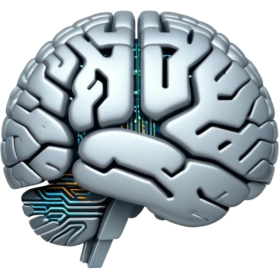 stylized AI brain emoji, circuit patterns, soft glow, representing artificial intelligence in a friendly way emoji