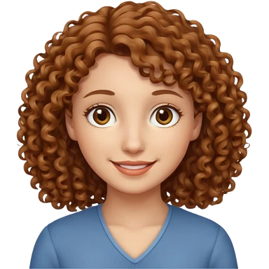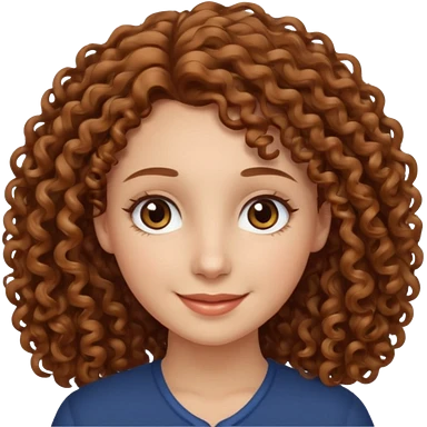 Uma menina de cabelos cacheados com olhos marrons e cabelos castanhos emoji