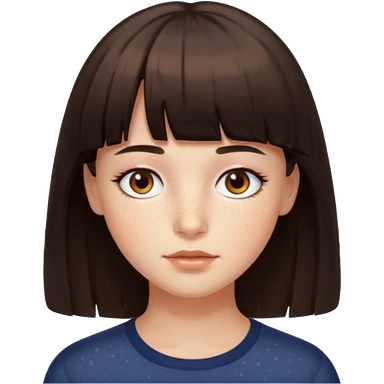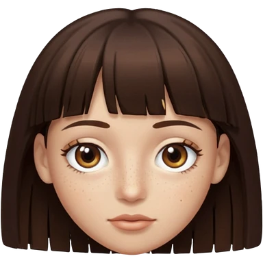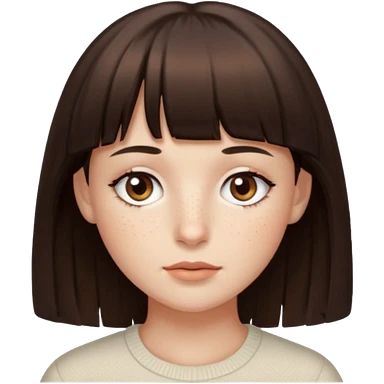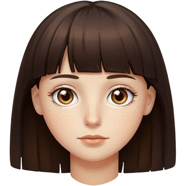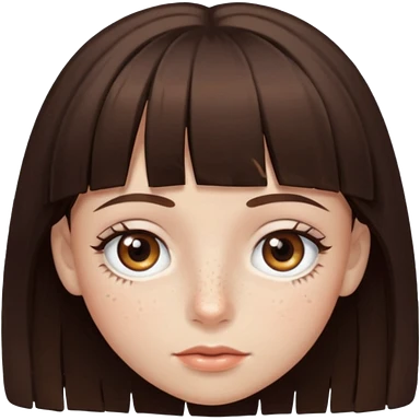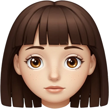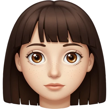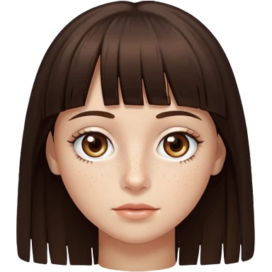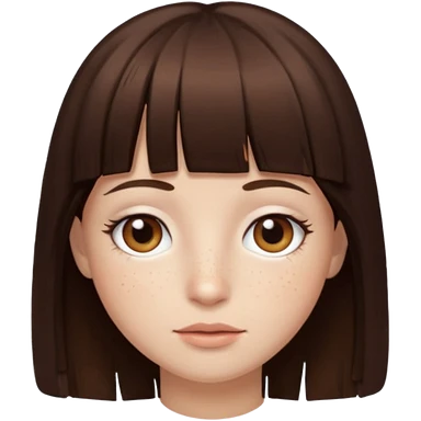 branca, olhos hazel, franjnha, pequenas sardas, cabelo castanho escuro, cabelo medio emoji | AI Emoji Generator