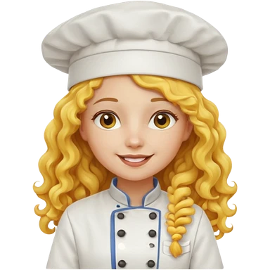 girl, yellow Long curly hair, happy, wearing chef uniform and chef hat emoji