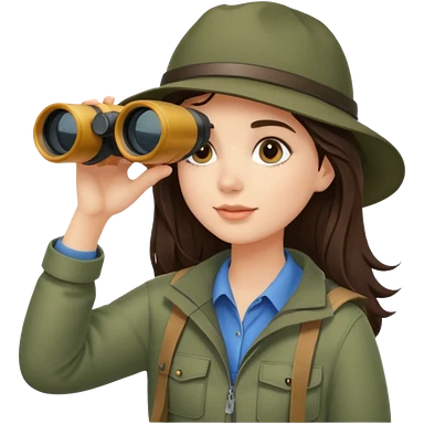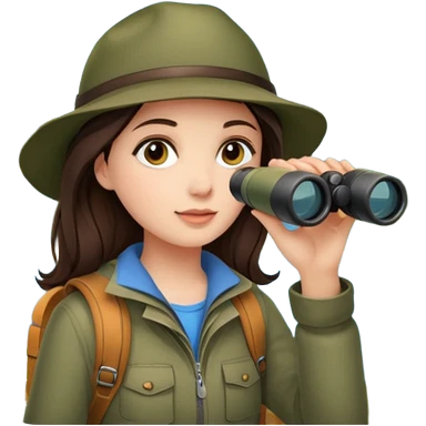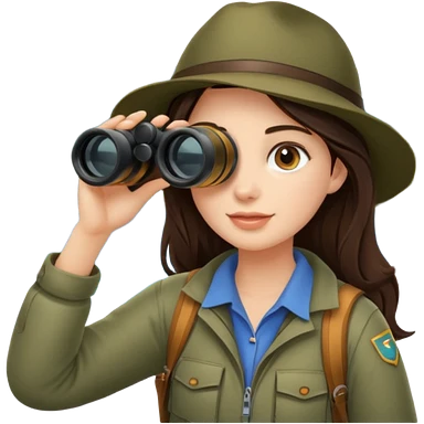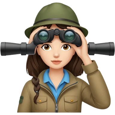 Brunette girl exploring camping binoculars emoji