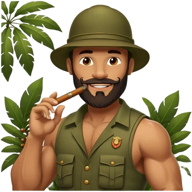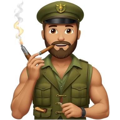brauny vested bearded jungle commando smoking a cigar with a grin emoji