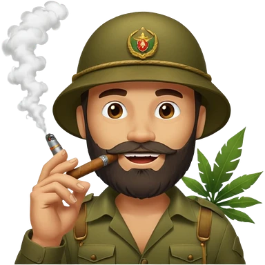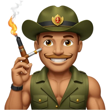 brauny bearded cool jungle commando smoking a cigar with a grin emoji