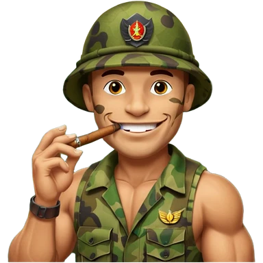 brauny cool jungle commando smoking a cigar with a grin emoji