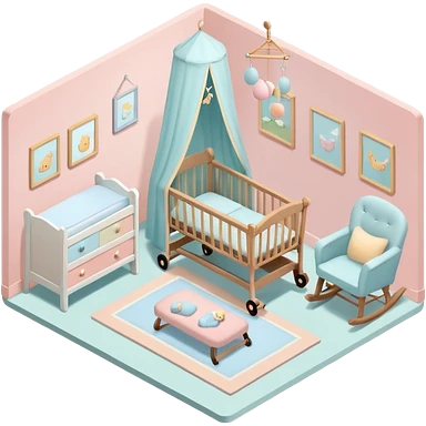 Cozy baby room with crib and teddy bear emoji