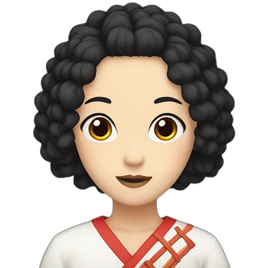 girl with dark black blueish hait having a red eye hero mask with a few big black dots on the mask emoji