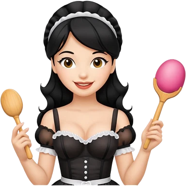 Sexy Latina maid showing off her fat ass and body in some sexy maid lingerie give her black hair and a sex toy in her hand emoji