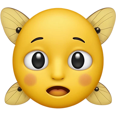 Yellow big shiny eyes emoji smiling and blushing with Bumblebees around it and its happy emoji