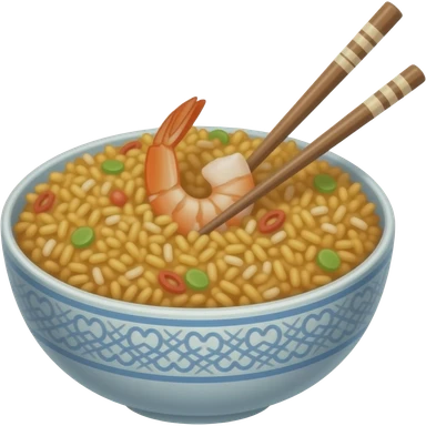 realistic -- fried rice with shrimp and sweet chili sauce in bowl emoji