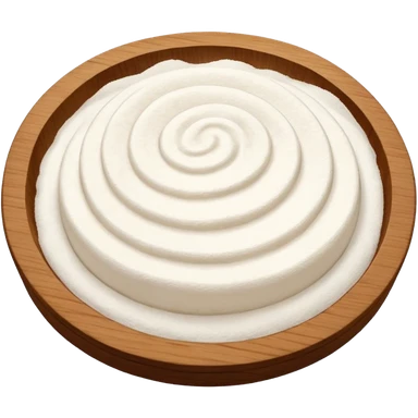 pour glutinous rice flour on circular wooden plate with curved edges emoji