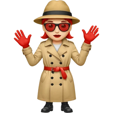 Tomato face emoji wearing long body trench coat hat sunglasses legs red hands emoji