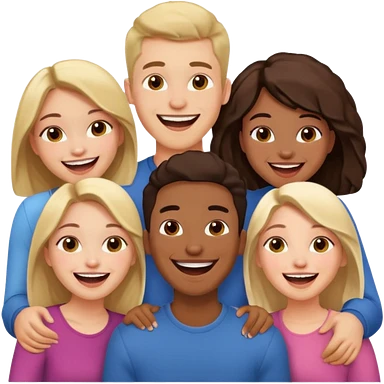 5 person European Family together consisting of 1 man with dark hair, one mother with light brown and 3 girls, with blonde hair emoji