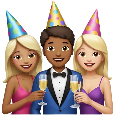 3 loving friends, 1 man and 2 girls with long hair emoji