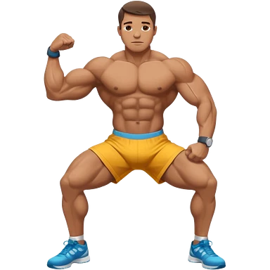 A bodybuilder doing a side lunge and flexing his biceps his kneels more down emoji