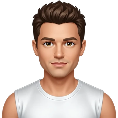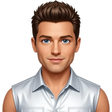 Drew Lachey from 98 Degrees with hazel eyes, brown short spiky hair, white metallic sleeveless shirt emoji