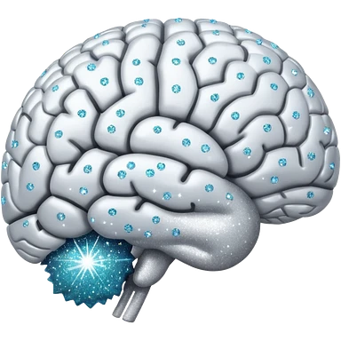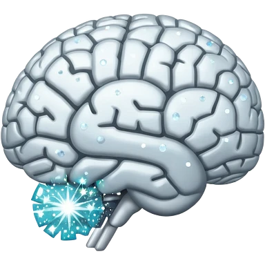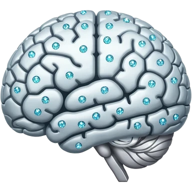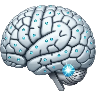 Futuristic AI brain emoji, simplified brain silhouette, metallic black and white, glowing neural lines inside, flat vector design, minimal clean style emoji
