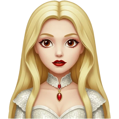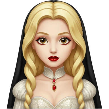 Bride of Dracula with long platinum blonde hair, ivory sequin outfit emoji