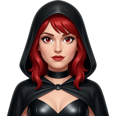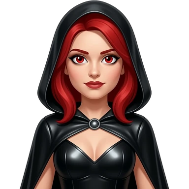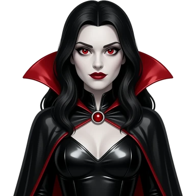 Countess Dracula from Horror Film Heroes and Villains with red eyes, long black hair, black metallic black caftan dress, dark red metallic cape emoji