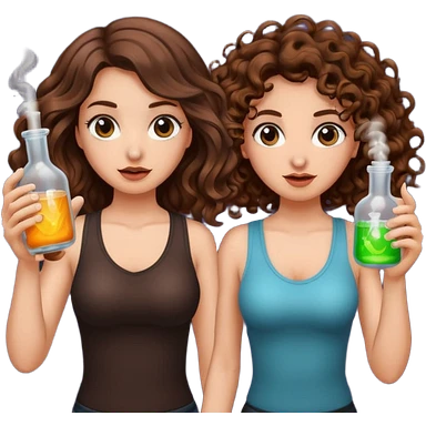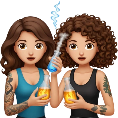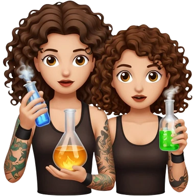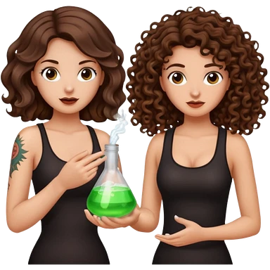 wrong mixture β long wavy brown hair tattooed woman and short tight curly brown hair woman β panic holding glowing flask emoji