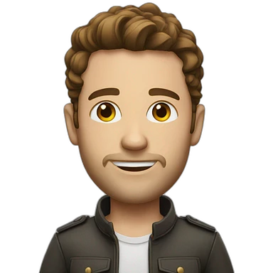 un chico con pelo castnio con ojos marones con remera negra con una cadena y con pelo cortito emoji