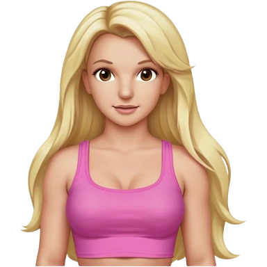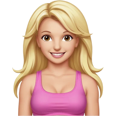 Britney Spears with long blonde hair, pink sequin crop top and pants emoji