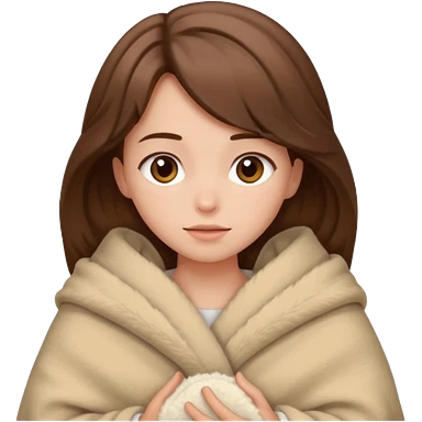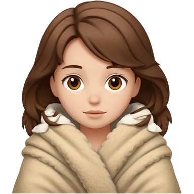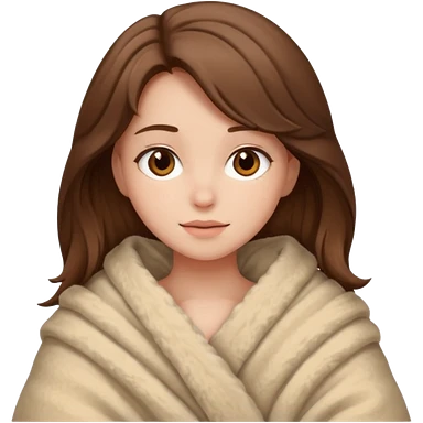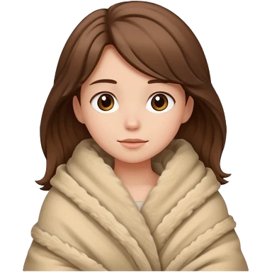 brown haired girl wrapped up in fluffy beige blanket emoji