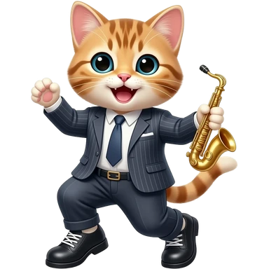 A giggling kitten dancing on Broadway with jazz shoes emoji