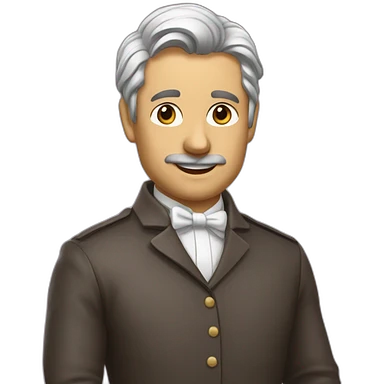Jeune femme avec de longs cheveux bruns attachés en une haute queue-de-cheval bouclée, portant une robe violette moulante avec des broches dorées sur les bretelles, regard en coin et sourire malicieux, style animation Disney emoji