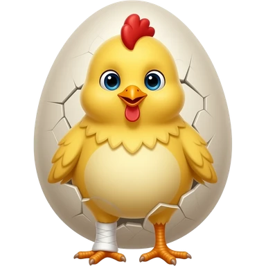 Chick with right leg cast coming out from cracked easter egg emoji