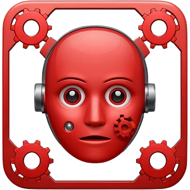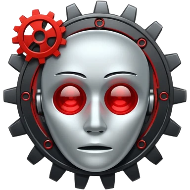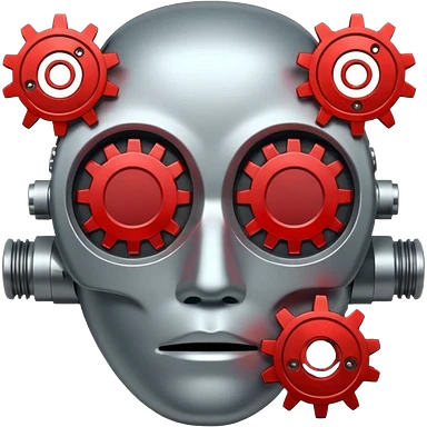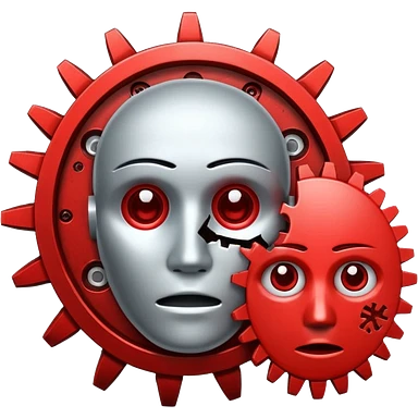 Broken Face ID scanner icon with red X and gears settings nearby, flat UI style alert. emoji