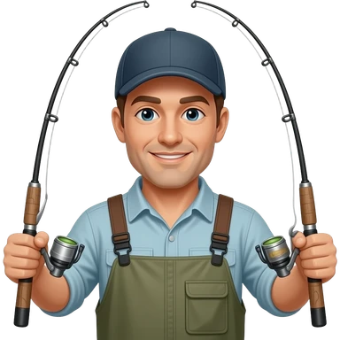guy fishing with a broken in half fishing rod, the fishing rod is broken in half emoji