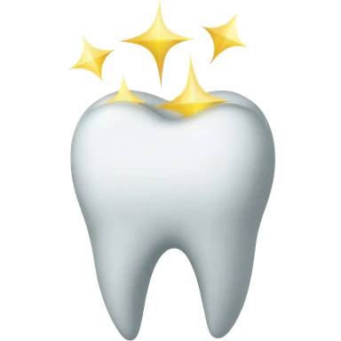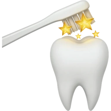 A tooth being brushed and giving off shinning stars from the crown emoji