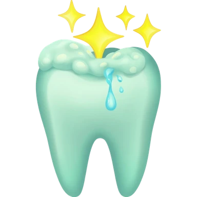 A tooth being cleaned with watergreen foam and giving off golden shinning stars from the top emoji