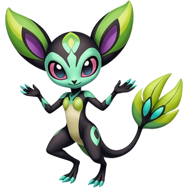 Colorful Exotic Meloetta-Celebi-Leafeon-Shaymin-Venom-Stitch-Fakémon-creature-hybrid emoji