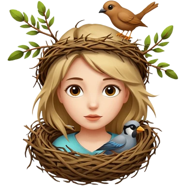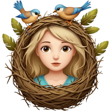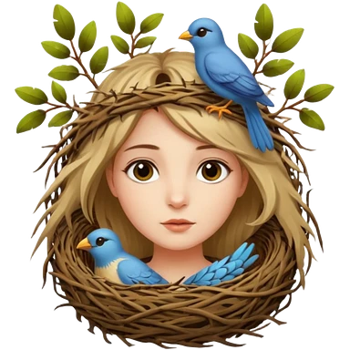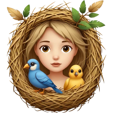 Pink sparkly bird sitting in birds nest with eggs emoji