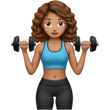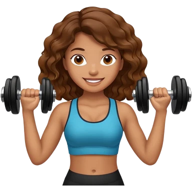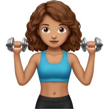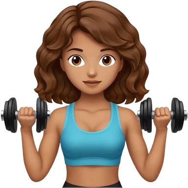 Brown wavy girl with dumbells in her hands emoji