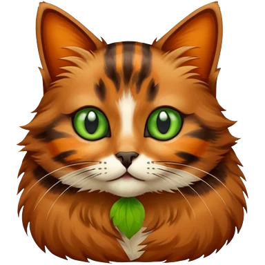 Brown and orange striped tortoiseshell cat with green eyes emoji