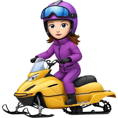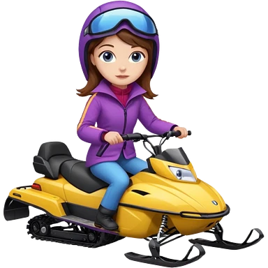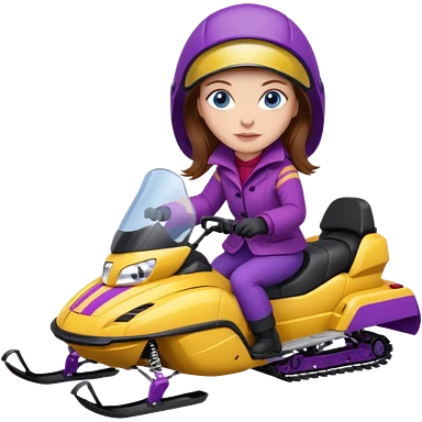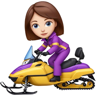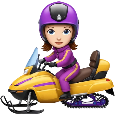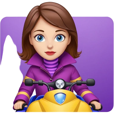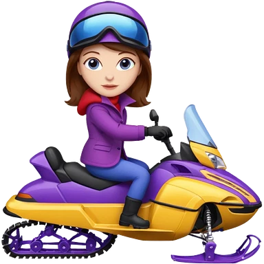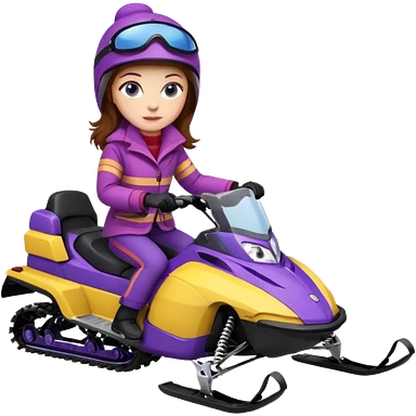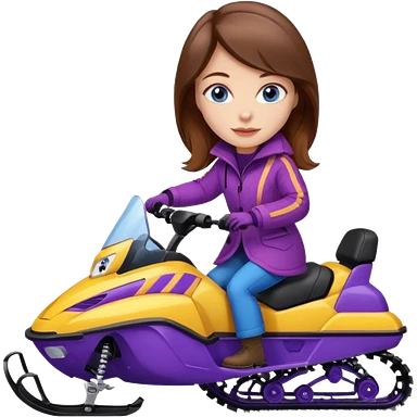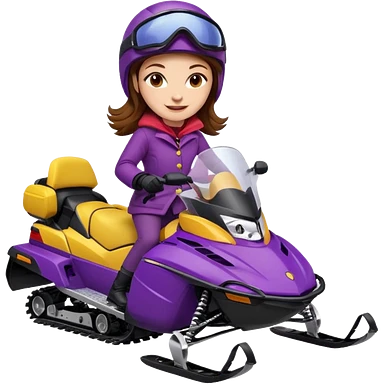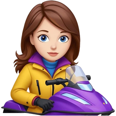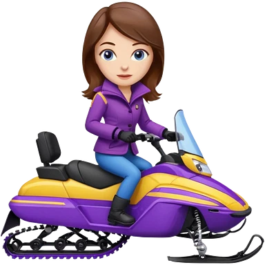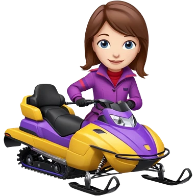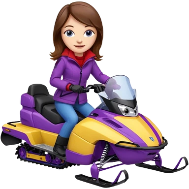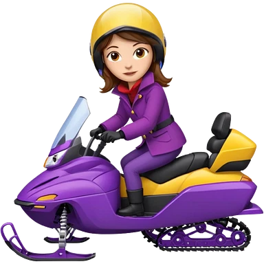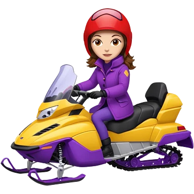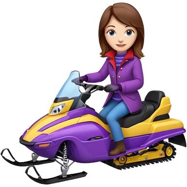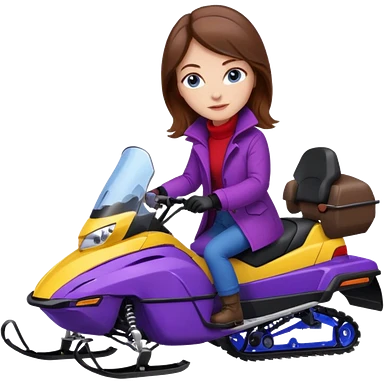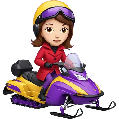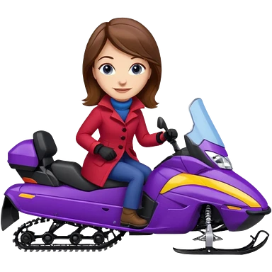 Brown hair Woman wearing red coat on purple and yellow snowmobile emoji