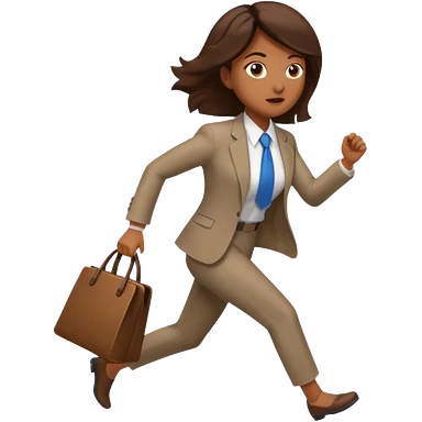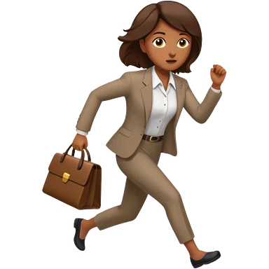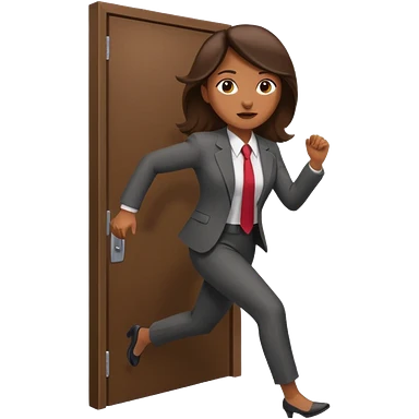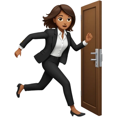 brown skinned female in business attire running out of door emoji
