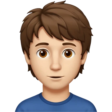 Brown hair white boy with b,rown eyes big nose and a shaggy hair cut emoji