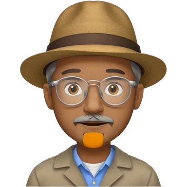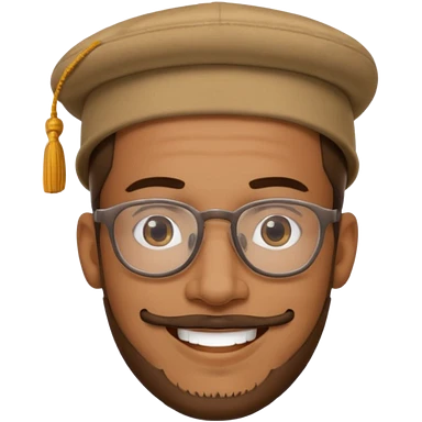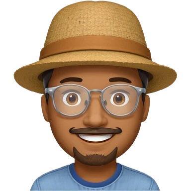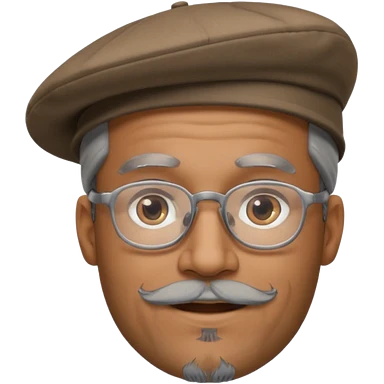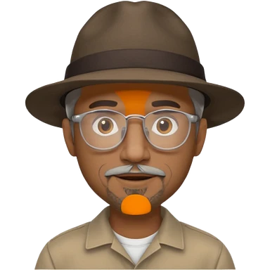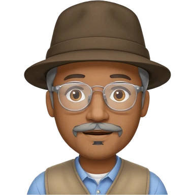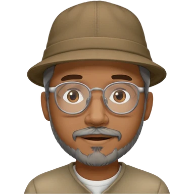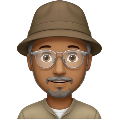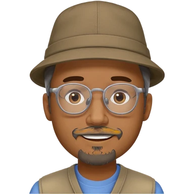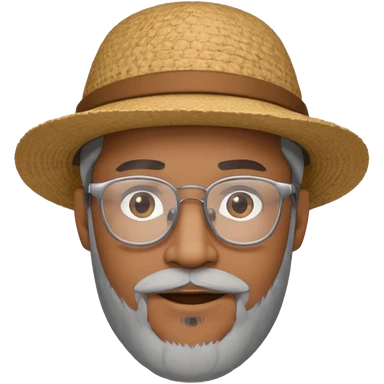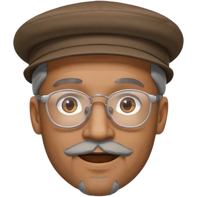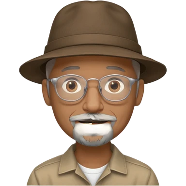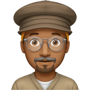 Brown man slightly smiling showing with hat, clear glasses and a gray goatee emoji
