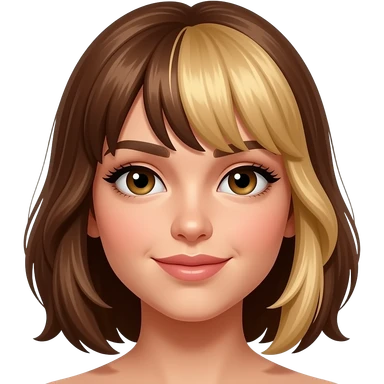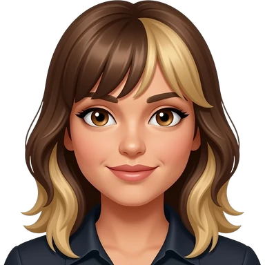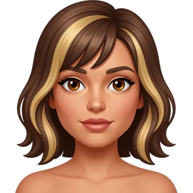 brown hair blond highlights, tan, side bang female with brown eyes emoji