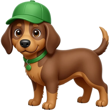 brown dog with standing positon wear a green hat front view emoji