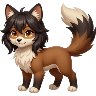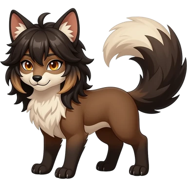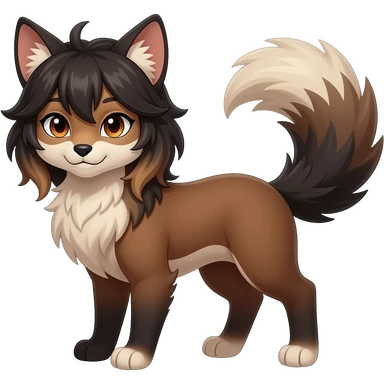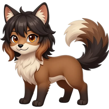 Brown and beige badass elegant wild beautiful natural cute badass epic exotic anthro modern furry 2-legged sergal-vernid-creature, full body, dark-brown-black-gradient pretty hair, with a long tufted tail, beautiful hazel-orange eyes, aesthetic, art by LiLaiRa, art by art by Falvie emoji