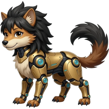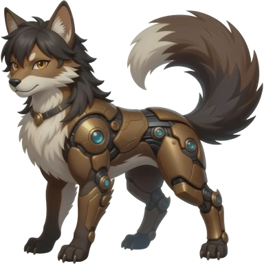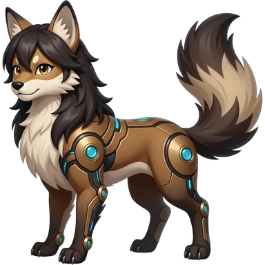 Brown and beige badass elegant wild beautiful natural badass futuristic epic exotic anthro modern furry cyborg-sergal-vernid-creature, full body, dark-brown-black-gradient pretty hair, with a long tufted tail, aesthetic, art by LiLaiRa, art by art by Falvie emoji