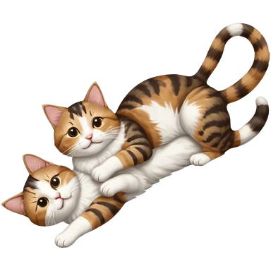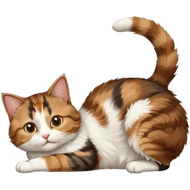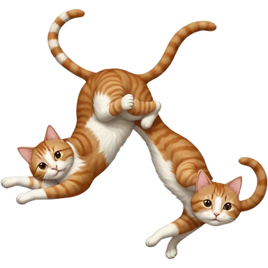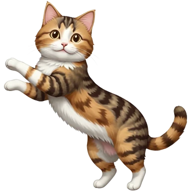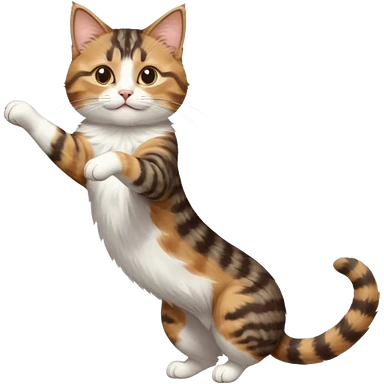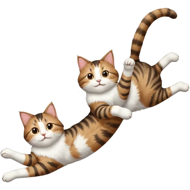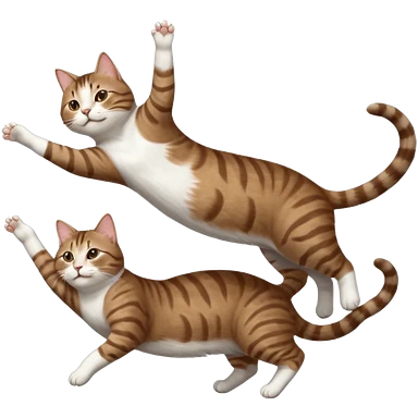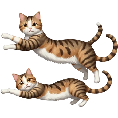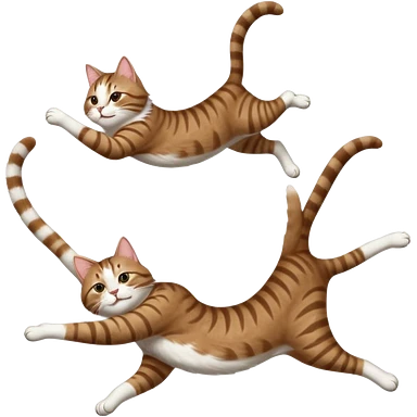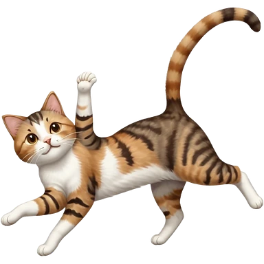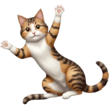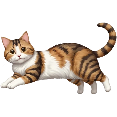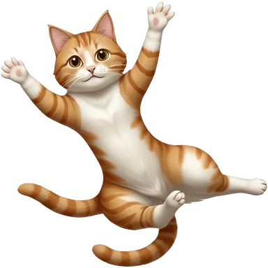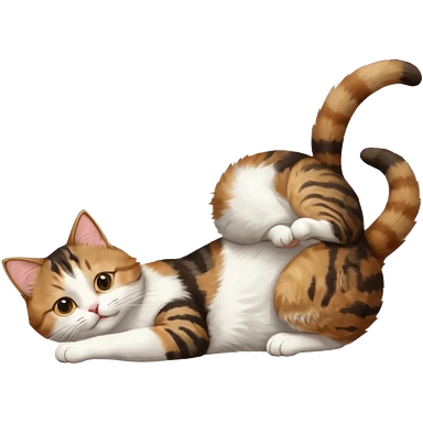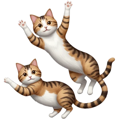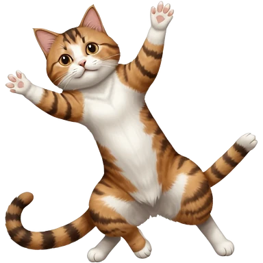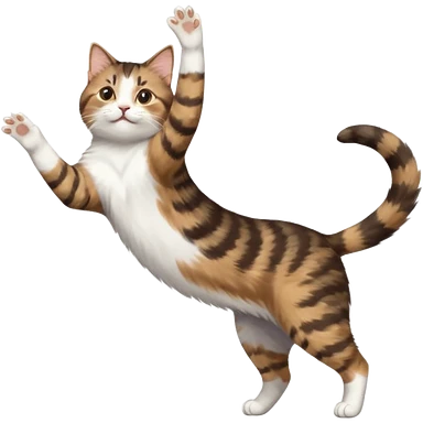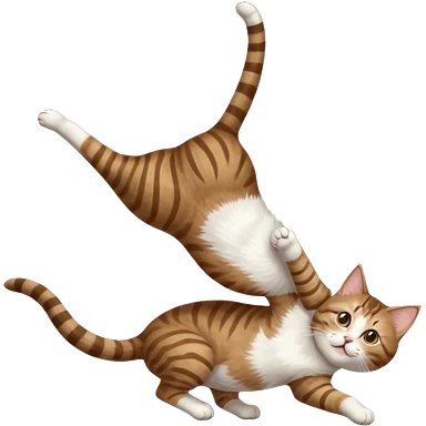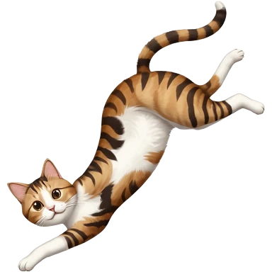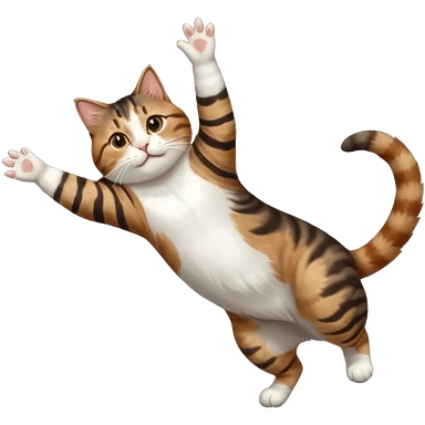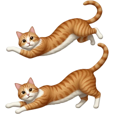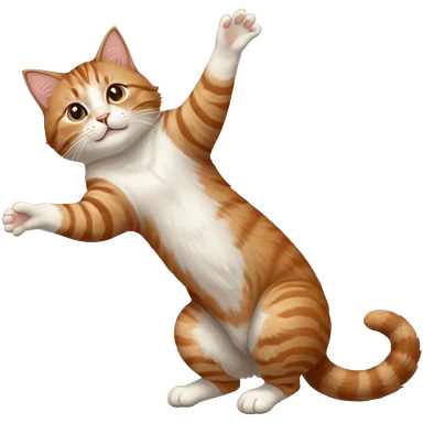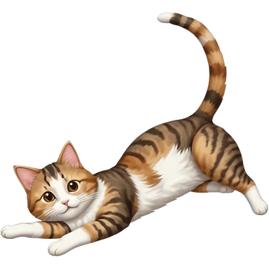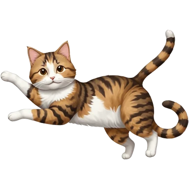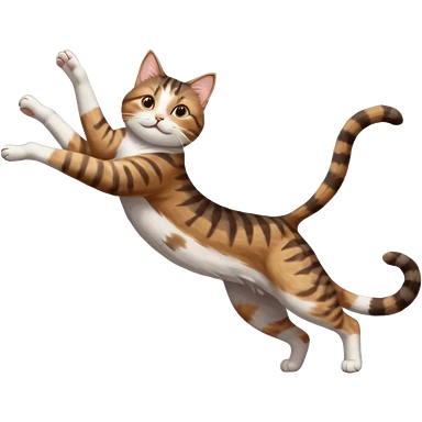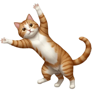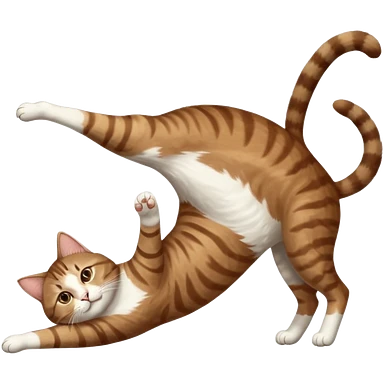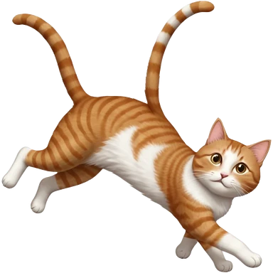 brown tabby and white cat with doing a big extremely long stretch reaching up into the air with arms and legs side by side together straight and overextended whilst lying on its side emoji