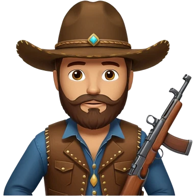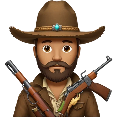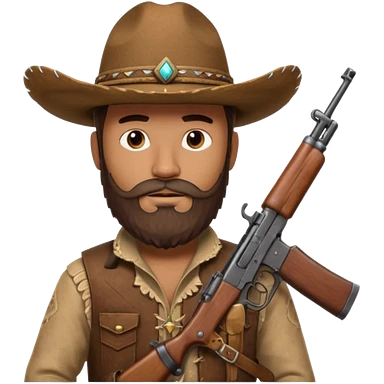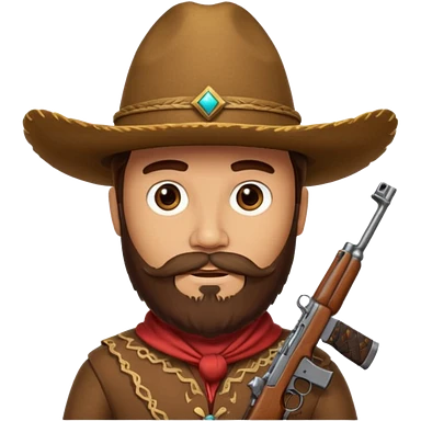 brown cowboy with full beard, sombrero and a ak47 up emoji