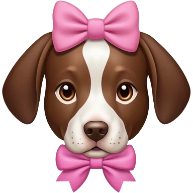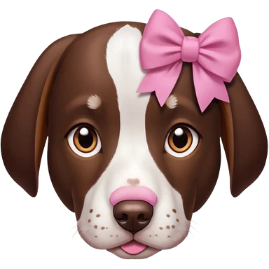 Brown and white face German short haired dog with pink bow on right ear emoji | AI Emoji Generator