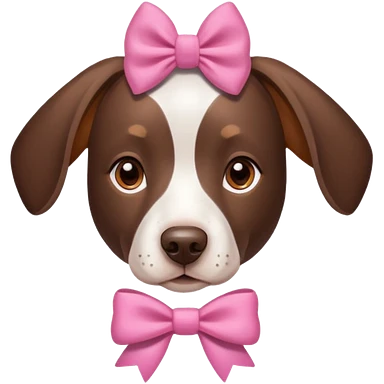 Brown and white German short haired pointer with pink bow on right ear emoji | AI Emoji Generator